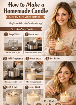 Beginner-friendly, step-by-step candle-making tutorial for cozy home décor, handmade gifts, and Pinterest-ready projects. Includes an infographic and minimal tools. 🕯️